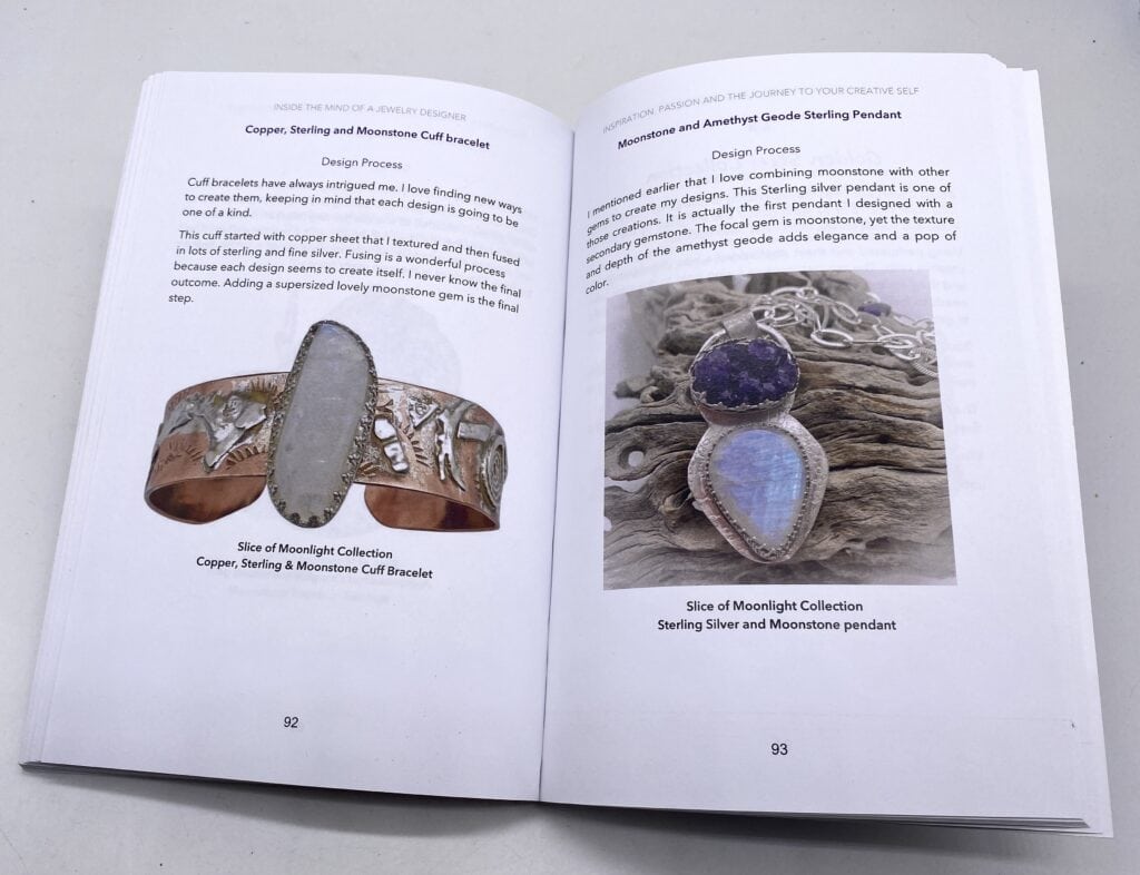 In Addition I have included details on my current collections. How did I create these collections? what is their meaning? This process is the most fun for me. Once I fall in love with a particular gem I delve into it’s history and find ideas for the formation of the collection. One of my favorite collections is ‘Slice of Moonlight’ which features moonstone. Moonstone is known for it’s pearly and opalescent features. Ancient Romans believed that this gem was actually a slice of solid moonlight! When worn this gem can bring us love and good fortune.